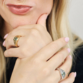 Bær ringen alene for et roligt statement-look, eller stack den med den anden Icicle ring fra samme serie for et unikt mix. Den kan også styles med smalle sølvringe for kontrast eller kombineres med armbånd i rå teksturer for et sammenhængende udtryk.