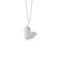 Designet er en organisk hjerteformet medaljon, der er lavet med tekstur på den ene side og en blank, poleret overflade på den anden, så den kan vendes alt efter udtryk. Den enkle form giver halskæden et tidløst look, der passer til både hverdag og særlige anledninger. Medaljonen kan åbnes og bruges til et lille billede eller graveres med en personlig besked, så den får en helt særlig betydning.