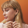 Inspired by the afterglow of the sun, the small hoops catch the light in the warm gold plating. The zirconia stones in the front are set in a calm rhythm and cast a balanced, clear glow - an understated shine that feels both simple and strong.