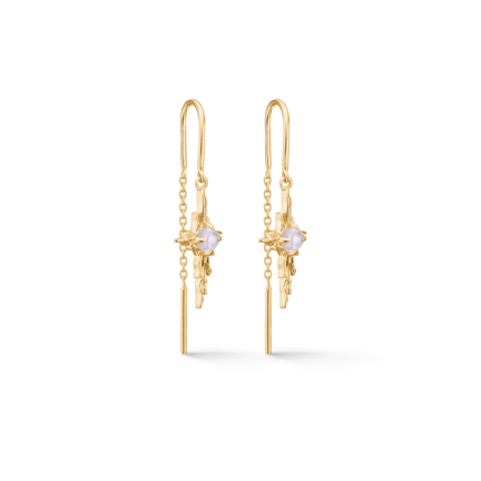 Arctic ørehængere i ægte 925 sterlingsølv med 18 karat forgyldning isat en lyseblå kubisk cabochon sten. Øreringene måler 17 mm.