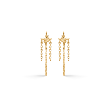 Designet er inspireret af isens rå tekstur. De små ørestikker har en organisk overflade med polerede detaljer, der fanger lyset og giver et enkelt, men markant udtryk. Tre fine kædestykker hænger fra hver ørering og tilfører bevægelse, som gør designet mere levende.