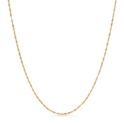 Designet er en klassisk halskæde med snoet struktur, der reflekterer lyset og giver et elegant udtryk. Den bevægelige kæde falder let mod huden og gør halskæden enkel at bære alene, men også oplagt at kombinere med andre kæder.