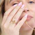 Brug ringen alene for et enkelt, minimalistisk udtryk, eller stack med blanke og strukturerede ringe for ekstra dybde.