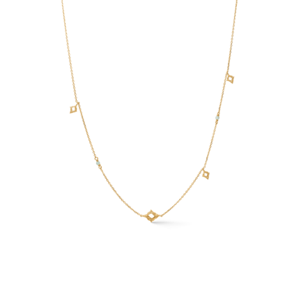 Bær halskæden alene for et enkelt hverdagsudtryk, stack den med en kortere kæde for dybde, eller match med funklende Peak Earrings til aften. Se flere halskæder til din personlige styling.