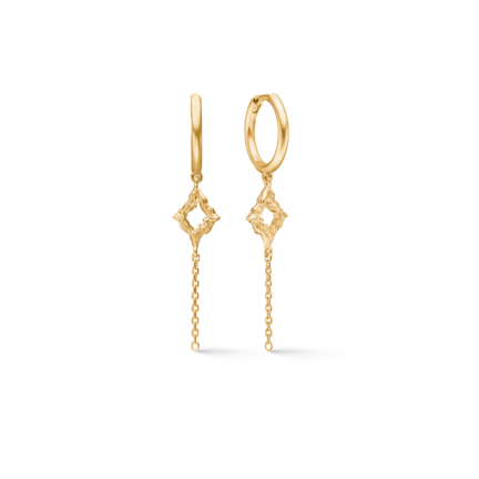 Peak øreringe i ægte 925 sterlingsølv med 18 karat forgyldning. Øreringene måler Ø 12 mm, kæde 40 mm.